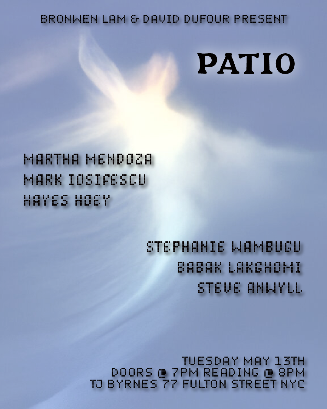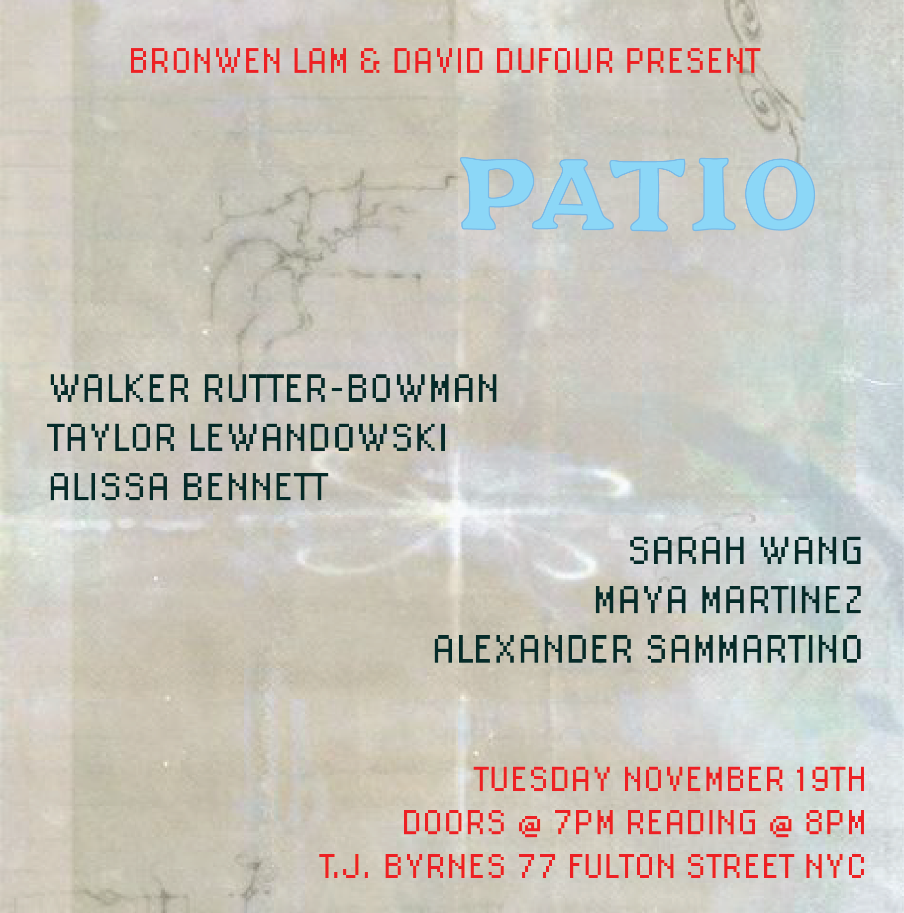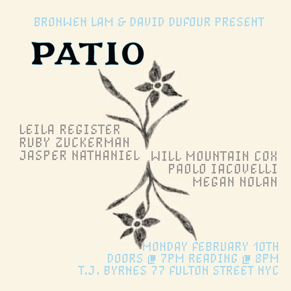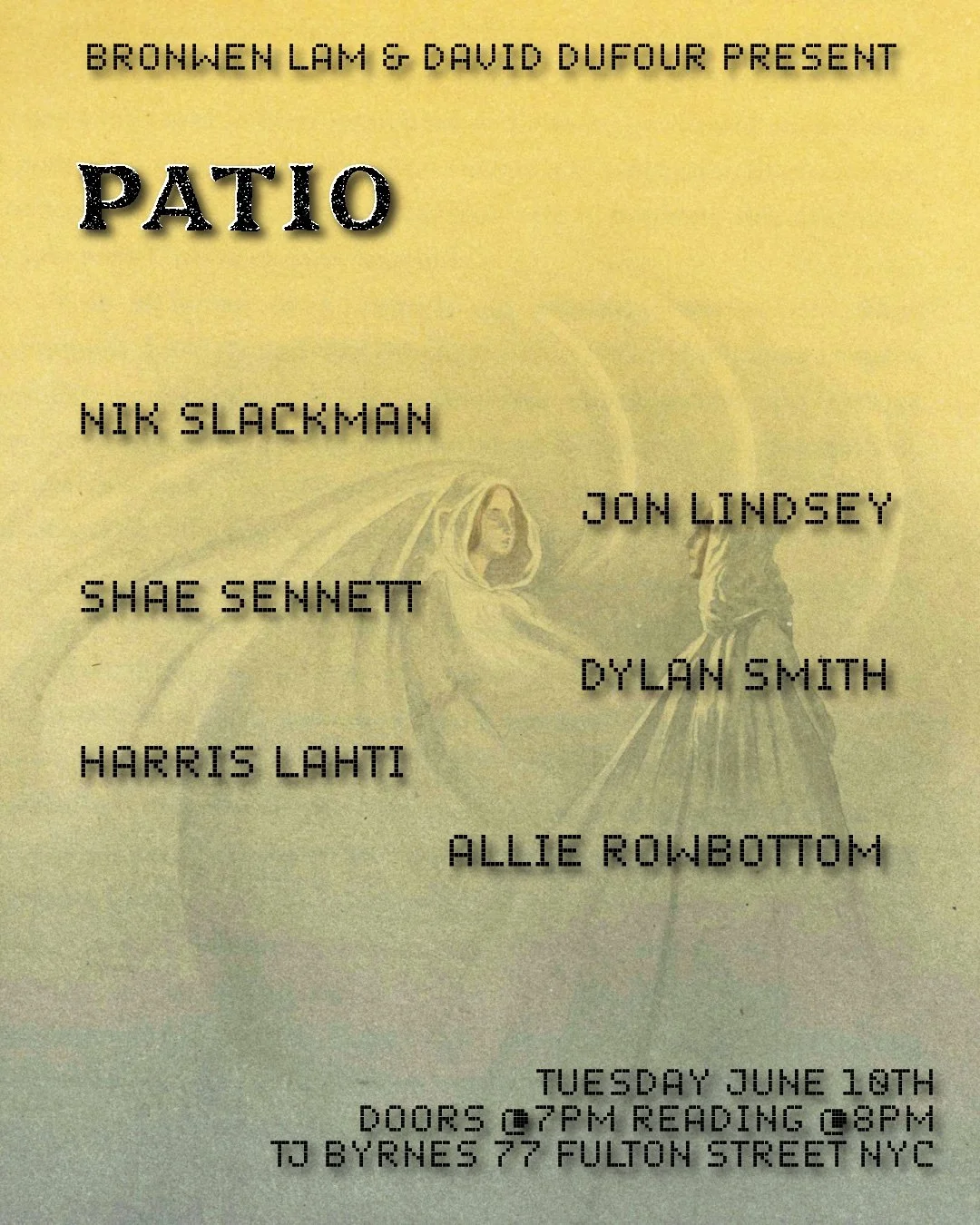 is a monthly literary reading series in NYC hosted by Bronwen Lam & David Dufour.